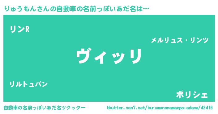 | 胡散臭い通販商品みたいなあだ名 | 『来世でも幸せになれる水素水…その名も「りゅうもん」』 |