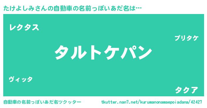 | 女子向けラノベタイトル風あだ名 | 『たけよしみの卵を拾いまして』 |