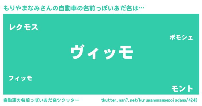 胡散臭い通販商品みたいなあだ名 | 『来世でも幸せになれる健康食品…その名も「もりやまなみ」』 |