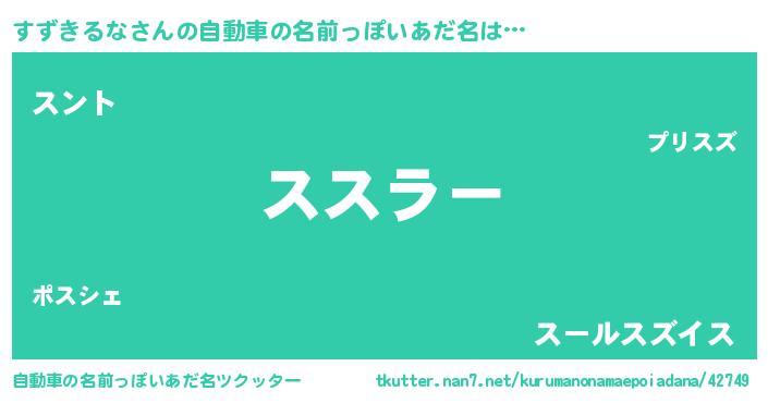 | ポケモン風あだ名 | 『スズキダネ』『ヒスズキルナ』 |