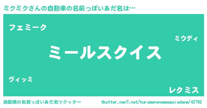 | ポケモン風あだ名 | 『ミクキング』『メロミック』 |