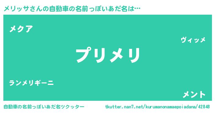 | 意味不明あだ名 | 『ペロリンメリッサ』『永久保存メリッサ』 |