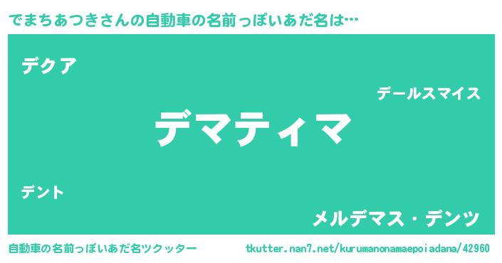 | 男性向けラノベタイトル風あだ名 | 『デマチアツキアートオンライン』 |