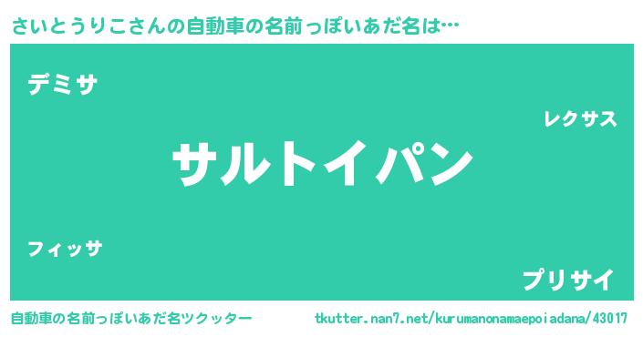 | 意味不明あだ名 | 『とにかく怪しいさいとうりこ』 |