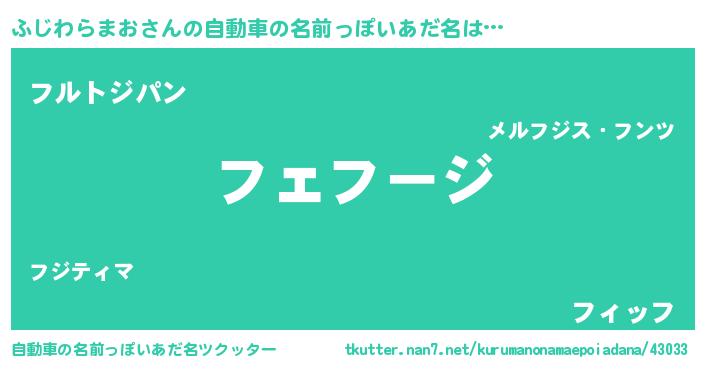 | ポケモン風あだ名 | 『メロフッジ』『ヒフジワラマオ』 |