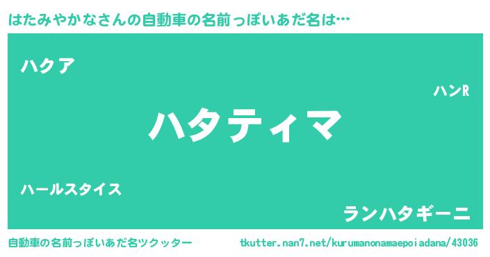 | ヒーロー風カッコイイあだ名 | 『スーパーハタミヤカナ』『仮面ハタダー』 |