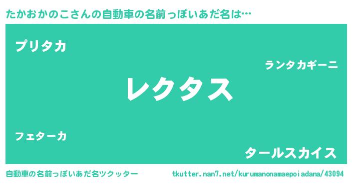 たかおかのこさんの自動車の名前っぽいあだ名をツクッター!