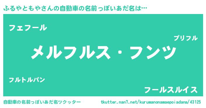 | 男性向けラノベタイトル風あだ名 | 『Re:ふるやともやから始める異世界生活』 |