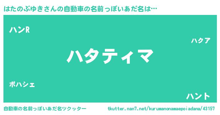 | ポケモン風あだ名 | 『ハタチュウ』『ハックウザ』 |
