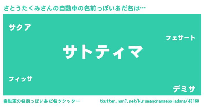 | ヒーロー風カッコイイあだ名 | 『スーパーサトウタクミ』『仮面サトダー』 |