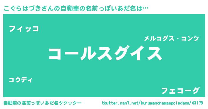 | 欧米人風あだ名 | 『トリンドルこぐらはづき』 |