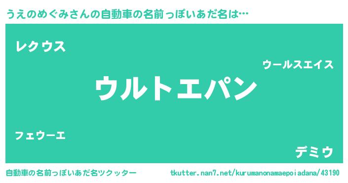| 欧米人風あだ名 | 『ウサインうえのめぐみ』 |