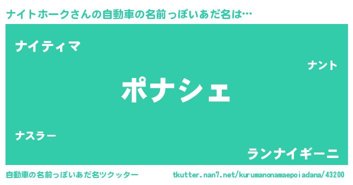 ナイトホークさんの自動車の名前っぽいあだ名をツクッター!