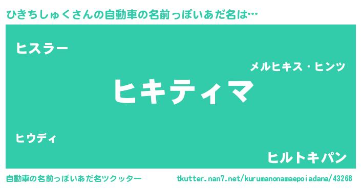 | ヒーロー風カッコイイあだ名 | 『スーパーヒキチシュク』『黄金騎士ヒキ』 |