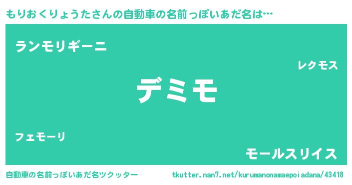 | 意味不明あだ名 | 『永久保存もりおくりょうた』 |