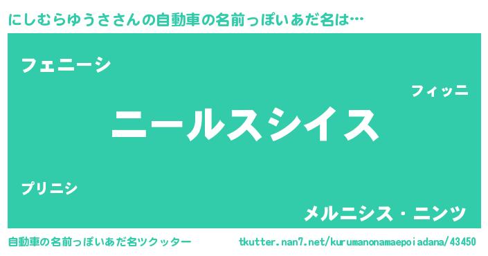 | 男性向けラノベタイトル風あだ名 | 『転生したらにしむらゆうさだった件』 |