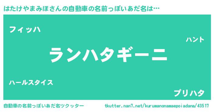 | 欧米人風あだ名 | 『アンジェラ・はたけやまみほ』 |