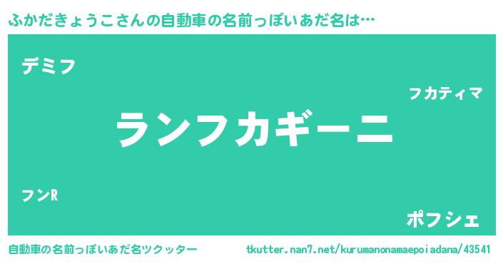 | ヘコむあだ名 | 『ふかだきょうこ(苦笑)』『ふかにー』 |