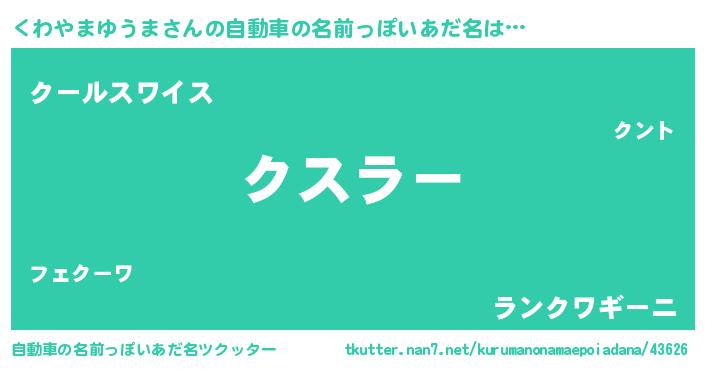 | 欧米人風あだ名 | 『くわやまゆうまクリステル』 |