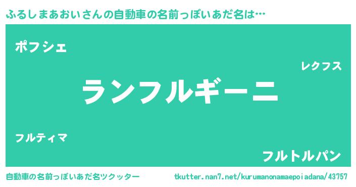 | 胡散臭い通販商品みたいなあだ名 | 『ハリウッド女優が絶賛した世界で10本だけ現存している希少なブランデー…その名も「ふるしまあおい」』 |