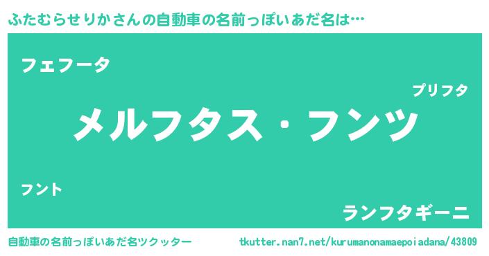 | 男性向けラノベタイトル風あだ名 | 『Re:ふたむらせりかから始める異世界生活』 |
