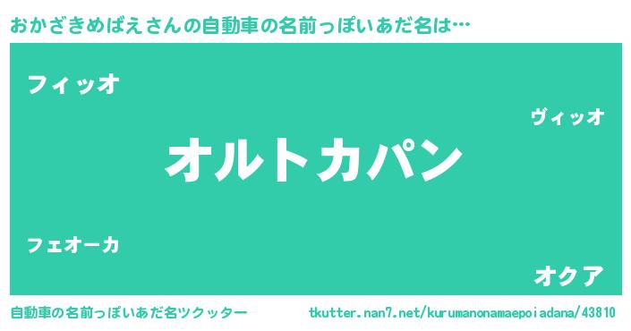 | 欧米人風あだ名 | 『ウサインおかざきめばえ』 |