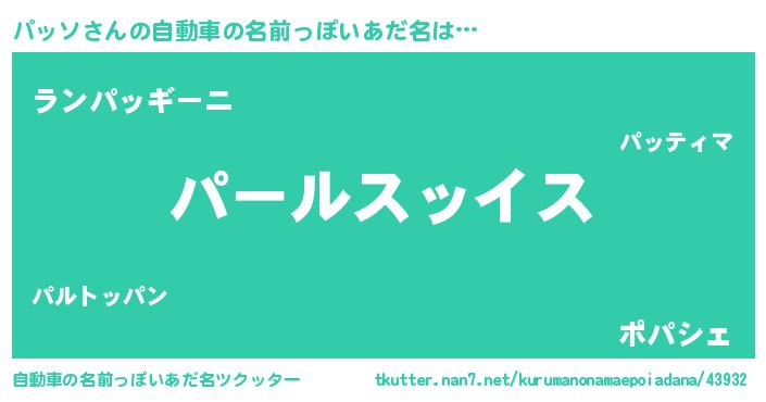 | 男性向けラノベタイトル風あだ名 | 『パッソ~年齢イコール彼女いない歴の魔法使い~』 |