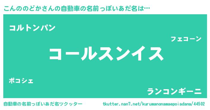 | 男性向けラノベタイトル風あだ名 | 『コンノノドカスレイヤー』 |