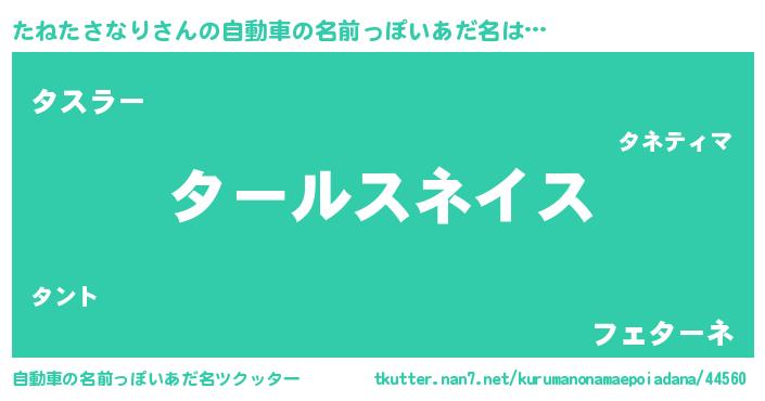 | 男性向けラノベタイトル風あだ名 | 『転生したらたねたさなりだった件』 |