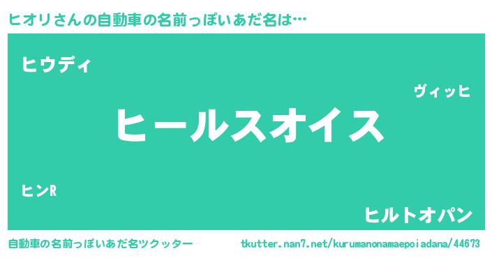 | 男性向けラノベタイトル風あだ名 | 『ヒオリ~年齢イコール彼女いない歴の魔法使い~』 |