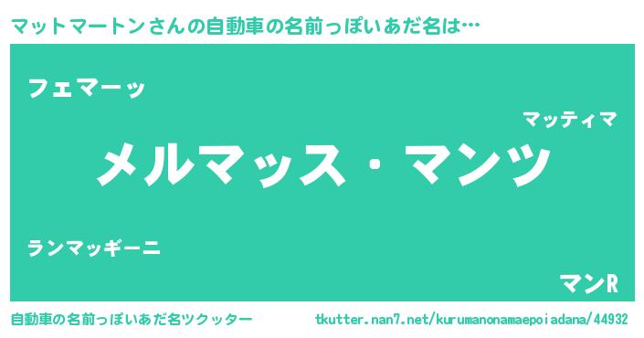 | 意味不明あだ名 | 『自称マットマートン』 |