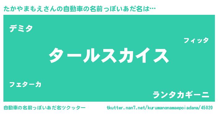 | 男性向けラノベタイトル風あだ名 | 『タカヤマモエスレイヤー』 |