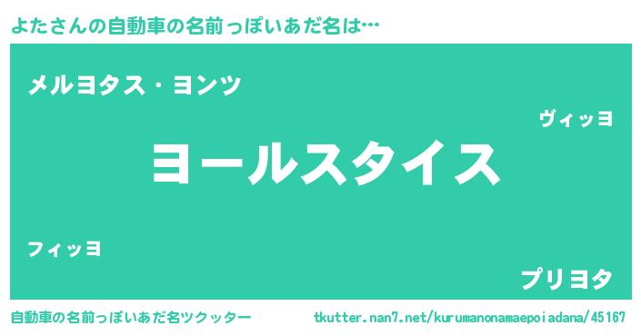 | 男性向けラノベタイトル風あだ名 | 『転生したらよただった件』『よたの憂鬱』 |
