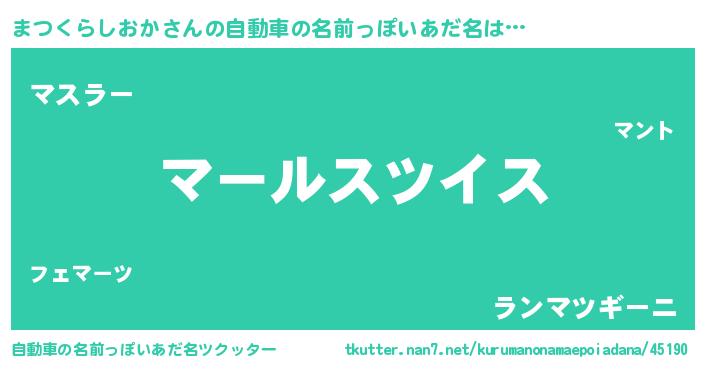 | 男性向けラノベタイトル風あだ名 | 『マツクラシオカスレイヤー』 |