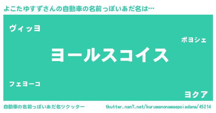 | 男性向けラノベタイトル風あだ名 | 『ヨコタユスズスレイヤー』 |