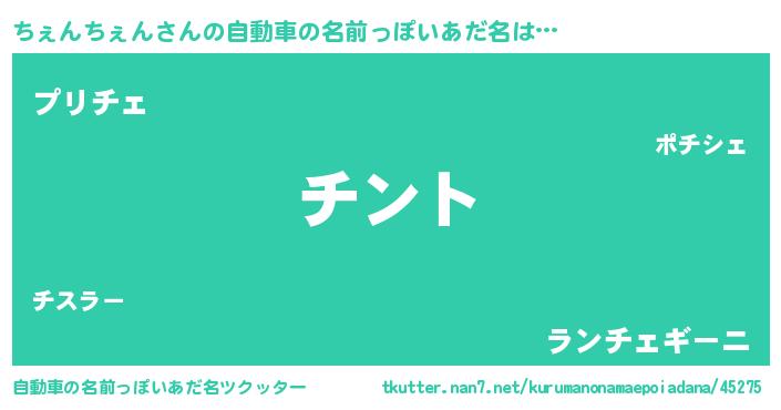 | 意味不明あだ名 | 『とにかく怪しいちぇんちぇん』 |