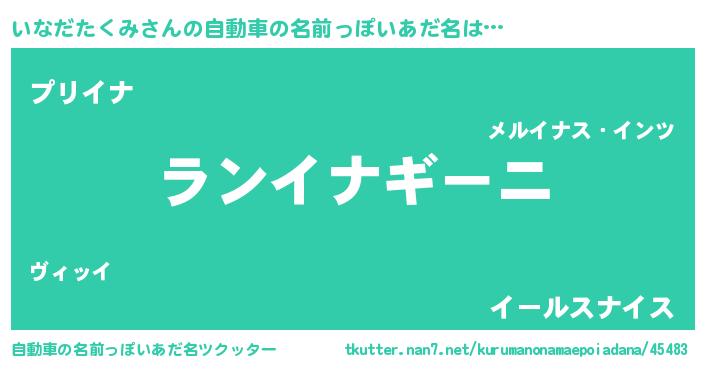 | ヘコむあだ名 | 『いなふぇ~』『いなだたくみ(爆)』 |