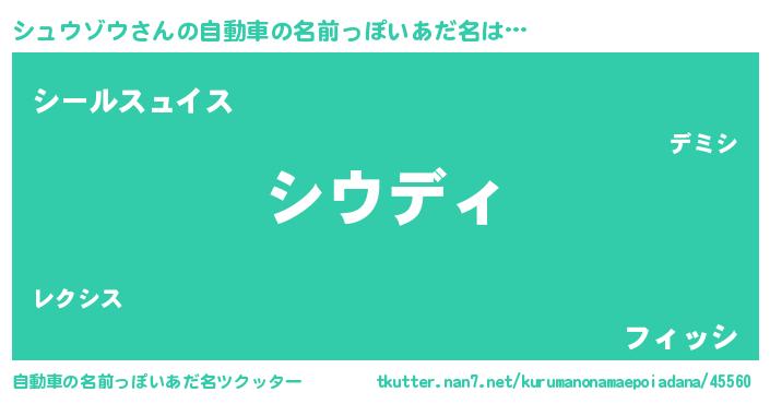 | ヒーロー風カッコイイあだ名 | 『仮面シュダー』『天空の使者シュウゾウ』 |