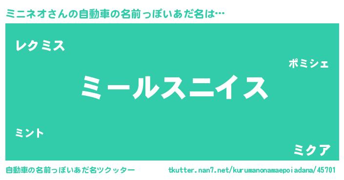 | 女子向けラノベタイトル風あだ名 | 『ミニネオの玉の輿計画!』 |