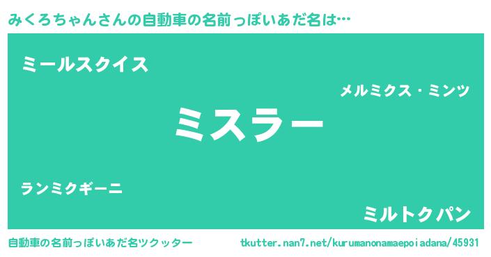 | 欧米人風あだ名 | 『みくろちゃんクリステル』 |