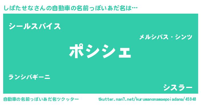 | 男性向けラノベタイトル風あだ名 | 『この素晴らしい世界にしばたせなを!』 |