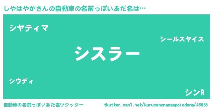 | 欧米人風あだ名 | 『しやはやかクリステル』 |
