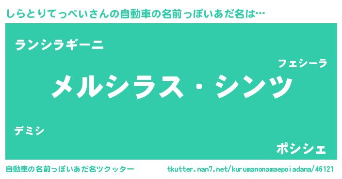 | 男性向けラノベタイトル風あだ名 | 『Re:しらとりてっぺいから始める異世界生活』 |