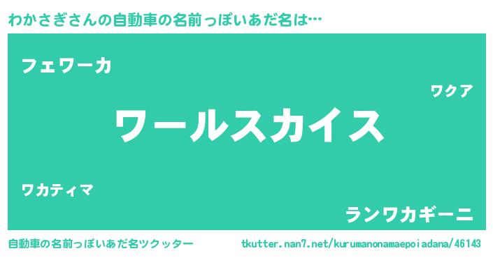 わかさぎさんの自動車の名前っぽいあだ名をツクッター!