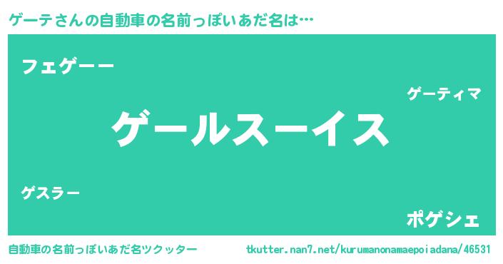 | 男性向けラノベタイトル風あだ名 | 『ゲーテスレイヤー』 |