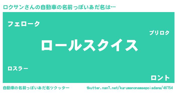 ロクサンさんの自動車の名前っぽいあだ名をツクッター!