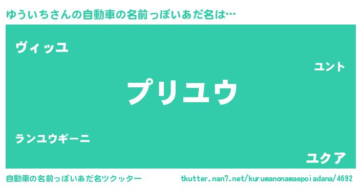 ゆういちさんの自動車の名前っぽいあだ名をツクッター!