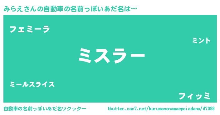 | 意味不明あだ名 | 『みらえフォーエバー』『ニラ科みらえ属』 |