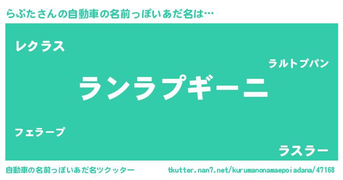 | 欧米人風あだ名 | 『アンジェラ・らぷた』『ウサインらぷた』 |