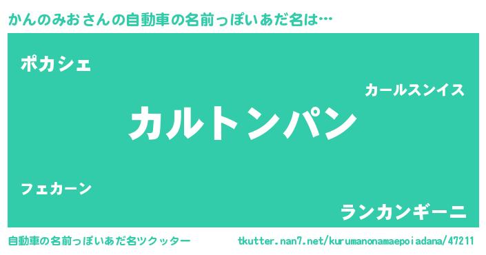 | 女子向けラノベタイトル風あだ名 | 『かんのみおの卵を拾いまして』 |